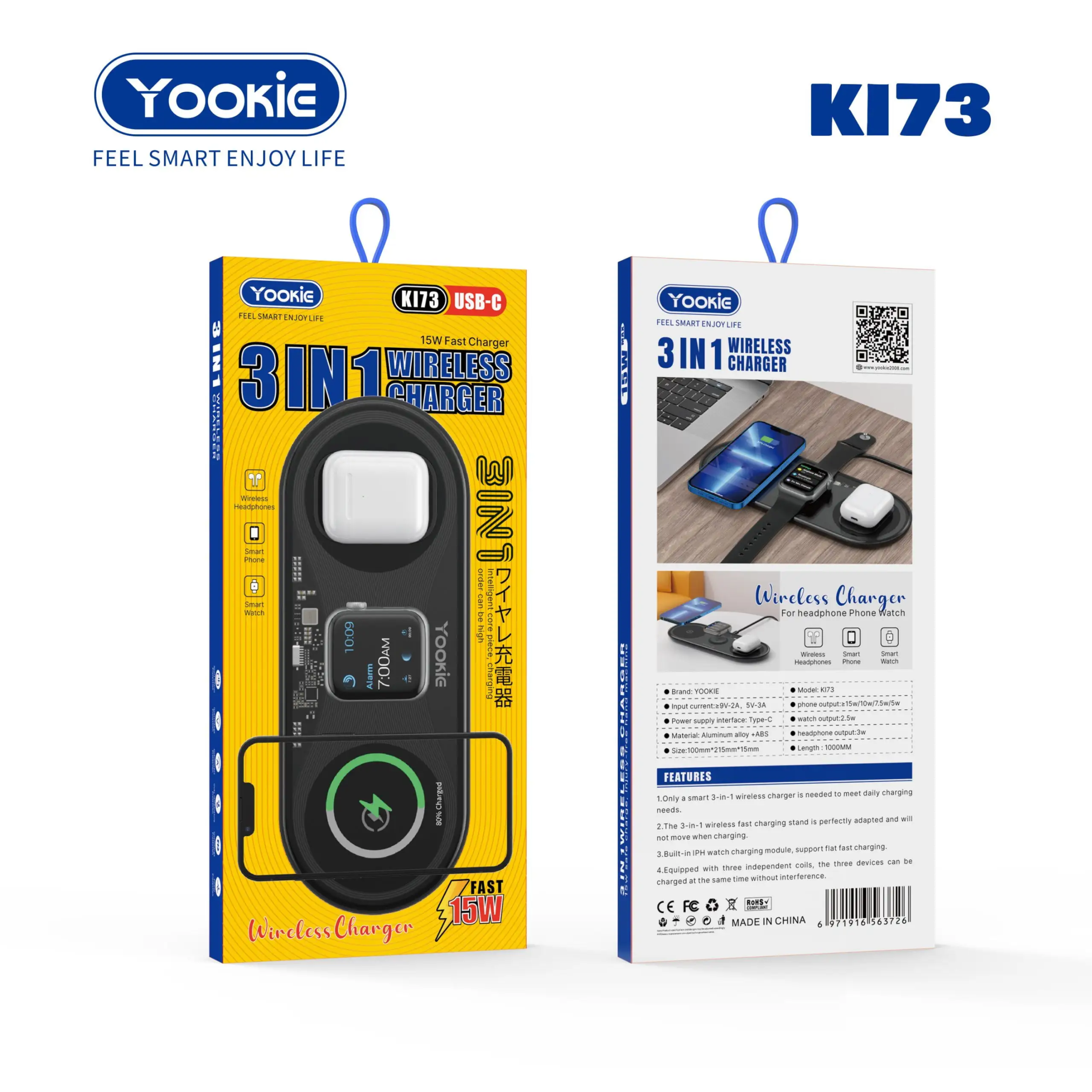 Yookie KI73 3-in-1 Wireless Charger design can support simultaneous charging of mobile phone, headset and watch